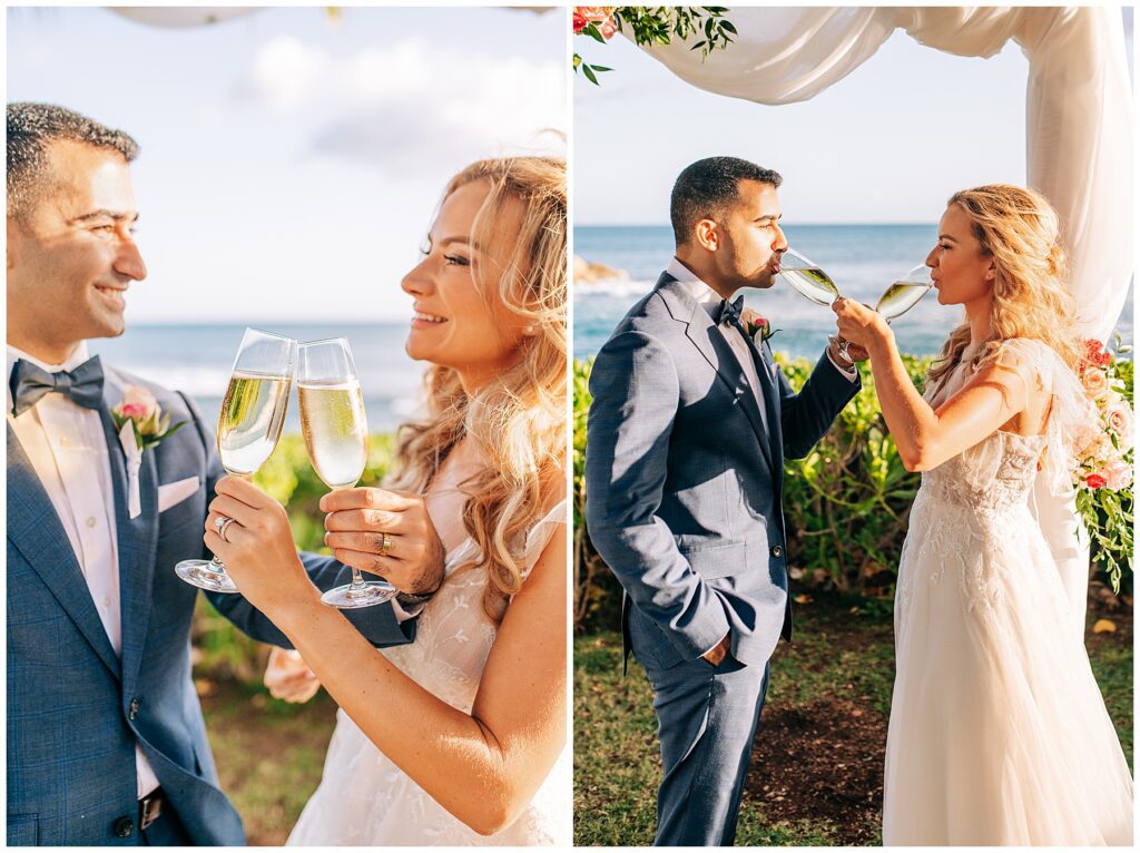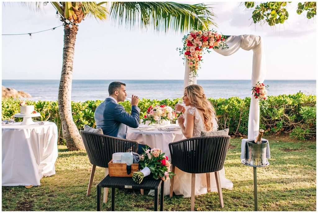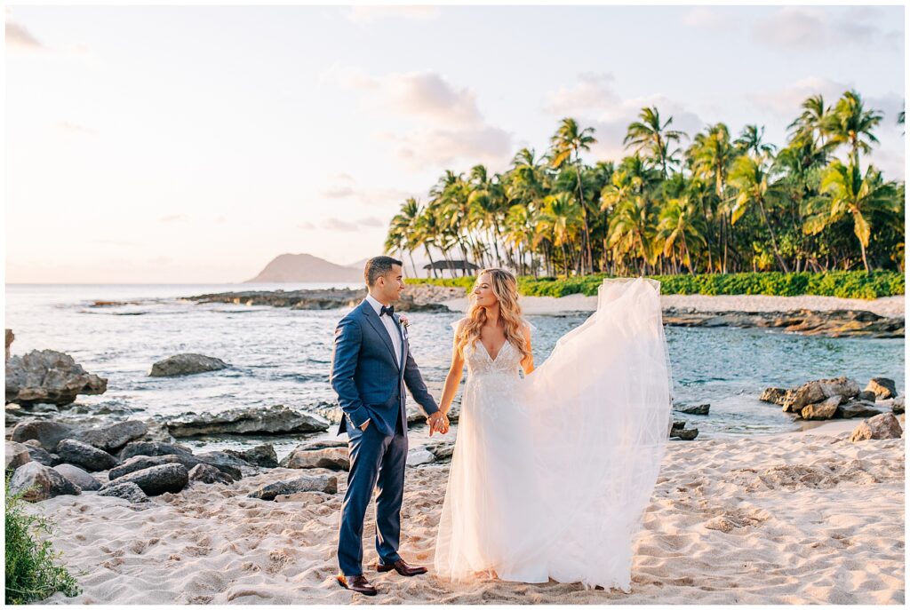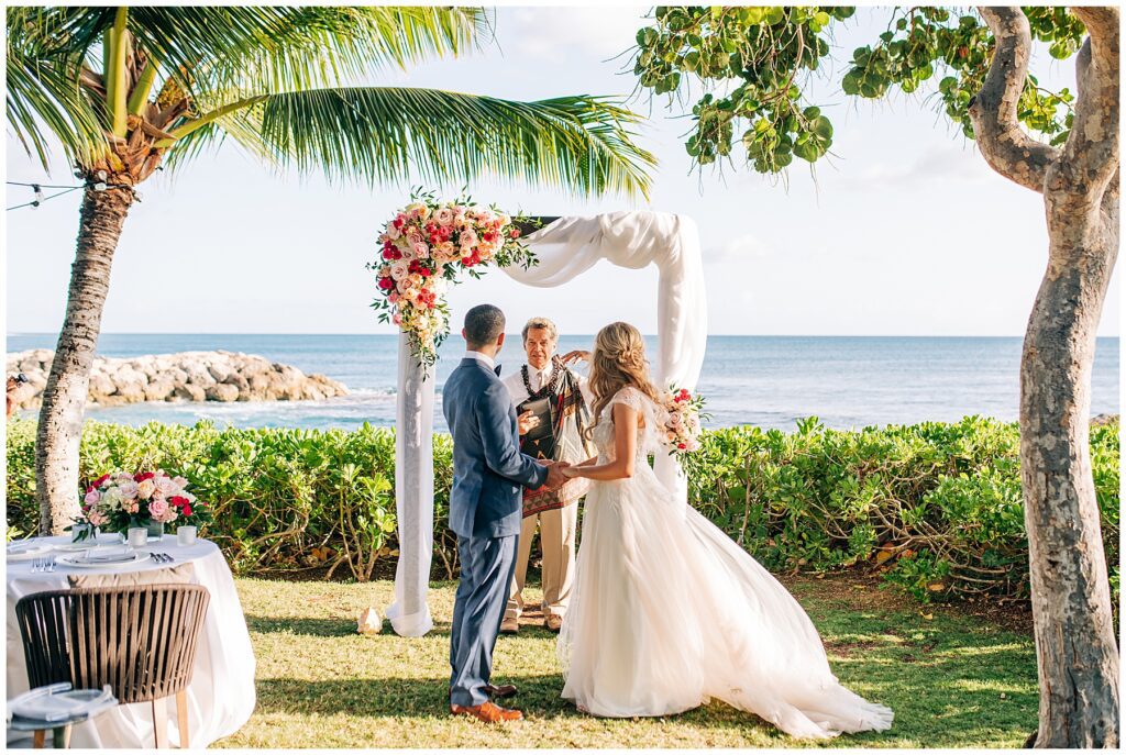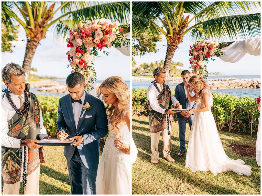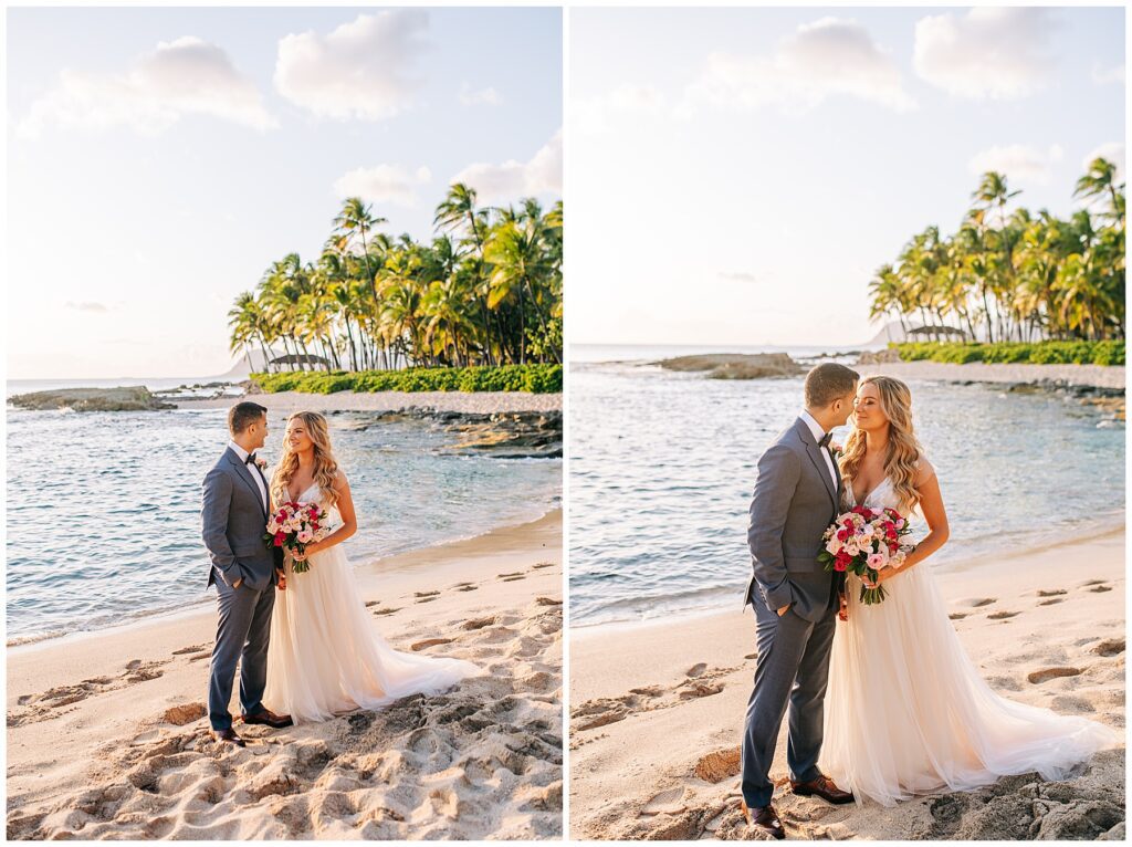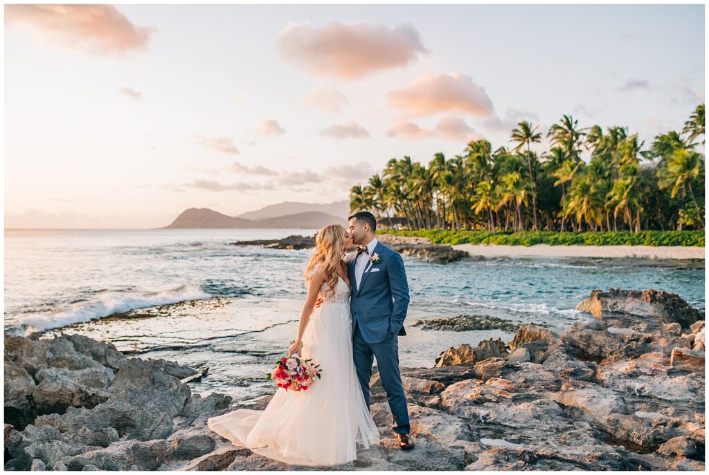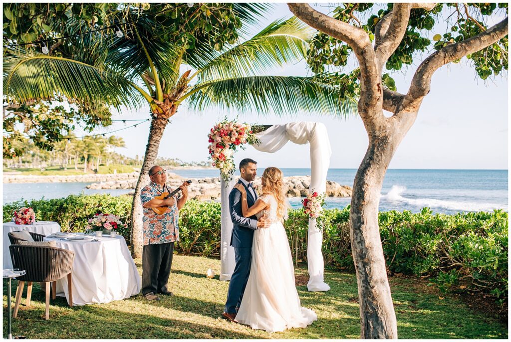 This Four Seasons Resort Elopement was so beautiful to capture and be apart of. I have always wanted to photograph a wedding at the four seasons and I’m so glad that I can now check that off as done. This wedding was very intimate and special for them. It was only those two for the ceremony and I always love when you get to really focus on the time between you and your partner and not worry about the rest of the crazy wedding stuff. We started out with the first look on the grass and it was so special to see that for them. They wanted to get some photos of them before the ceremony, so we went to this special spot that they loved, and got some pictures there. The ceremony was just about to start, so we headed too the area where they were getting married. There was the officiant under the alter waiting and someone singing while playing the ukulele. They got to share their first kiss as husband and wife and couldn’t of been more happier. We ended the night taking photos around the resort at some spots that they wanted photos with. The sun was almost fully set and so we ran out to the beach for last minute beach sunset photos. I was happy to have been apart of this beautiful day.